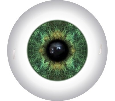 The iris is digitally printed, which allows us to create very complex images. The iris and pupil come in three sizes: large (60 percent of the eye diameter), medium (50 percent of the eye diameter), and small (40 percent of the eye diameter).