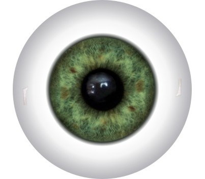 The iris is digitally printed, which allows us to create very complex images. The iris and pupil come in three sizes: large (60 percent of the eye diameter), medium (50 percent of the eye diameter), and small (40 percent of the eye diameter).