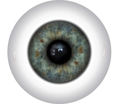 The iris is digitally printed, which allows us to create very complex images. The iris and pupil come in three sizes: large (60 percent of the eye diameter), medium (50 percent of the eye diameter), and small (40 percent of the eye diameter).