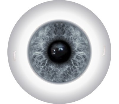 The iris is digitally printed, which allows us to create very complex images. The iris and pupil come in three sizes: large (60 percent of the eye diameter), medium (50 percent of the eye diameter), and small (40 percent of the eye diameter).