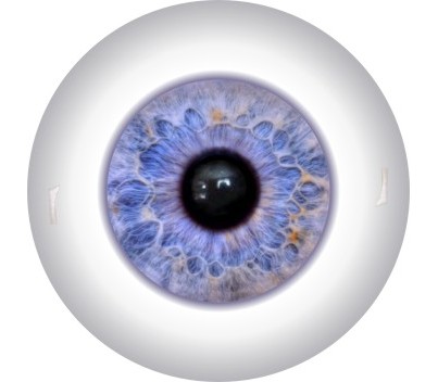 The iris is digitally printed, which allows us to create very complex images. The iris and pupil come in three sizes: large (60 percent of the eye diameter), medium (50 percent of the eye diameter), and small (40 percent of the eye diameter).