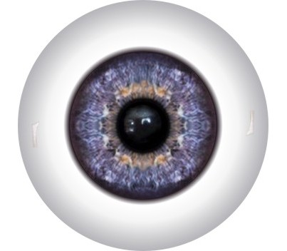 The iris is digitally printed, which allows us to create very complex images. The iris and pupil come in three sizes: large (60 percent of the eye diameter), medium (50 percent of the eye diameter), and small (40 percent of the eye diameter).