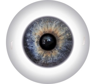 The iris is digitally printed, which allows us to create very complex images. The iris and pupil come in three sizes: large (60 percent of the eye diameter), medium (50 percent of the eye diameter), and small (40 percent of the eye diameter).