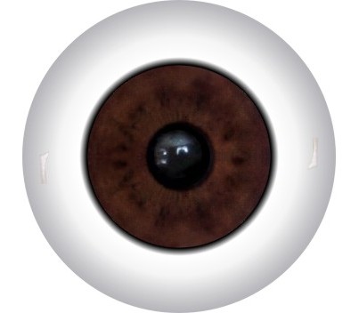 The iris is digitally printed, which allows us to create very complex images. The iris and pupil come in three sizes: large (60 percent of the eye diameter), medium (50 percent of the eye diameter), and small (40 percent of the eye diameter).