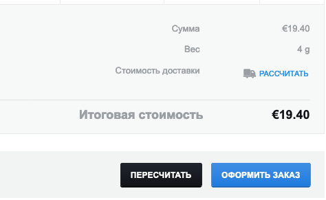 Для заказов весом до 100 г. стоимость доставки составляет 5 евро.
