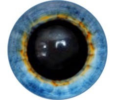 Our A series is perfect for amigurumi and soft toys (such as teddy bears). The eyes come in sizes from 4 mm all the way to 100 mm. They feature a large variety of iris colors and patterns (from simple to more realistic) and a round black pupil. The back side of the eye can be made either with a ribbed plastic stem (for use with plastic washers) or with a wire loop for sewing them on. You can easily snap them off if you don't need them.